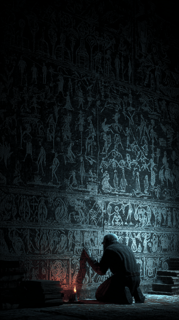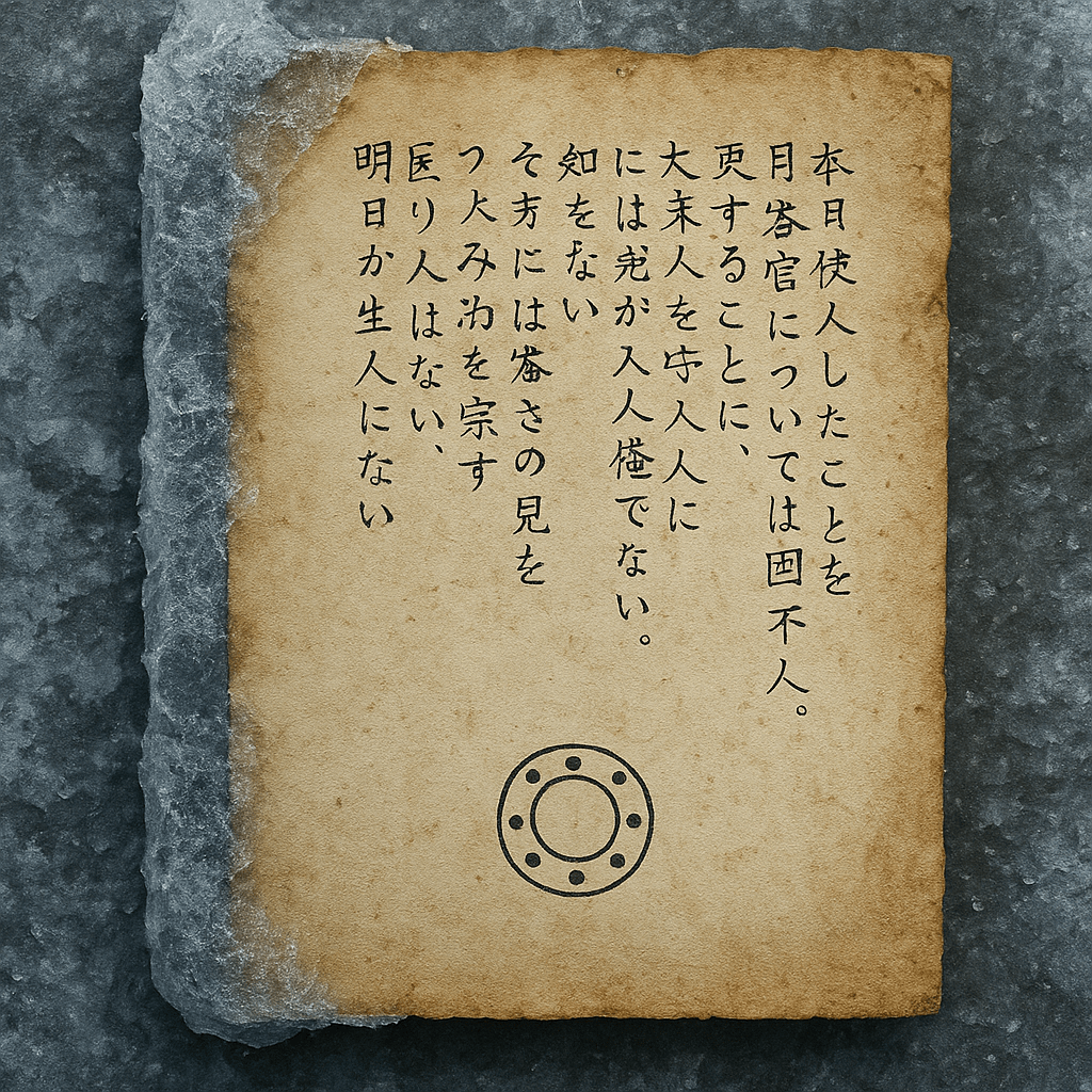 羊皮紙にラテン語で書かれた密命。その封蝋には、ローマの公印とは別の、細く歪んだ十字が刻まれている。十字はわずかに逆向きに捻れ、霧のような線が絡みついていた。