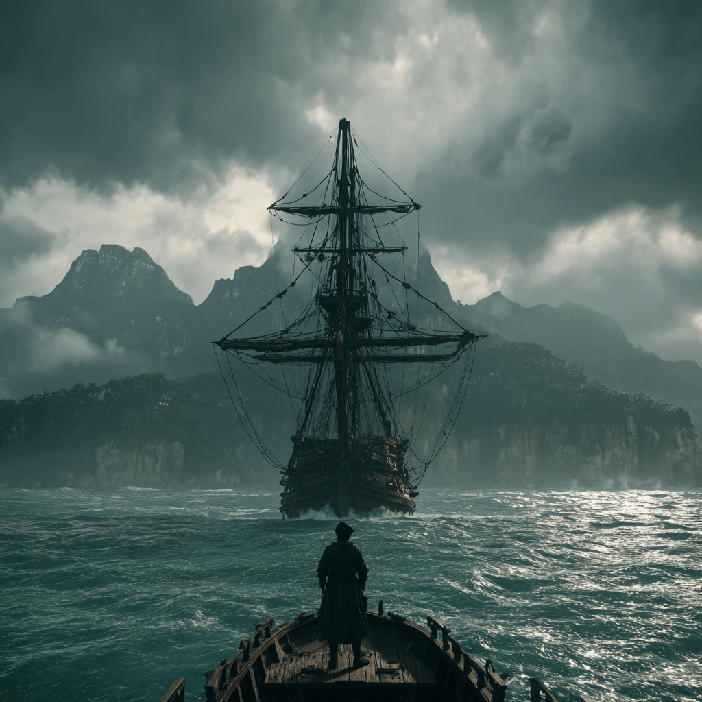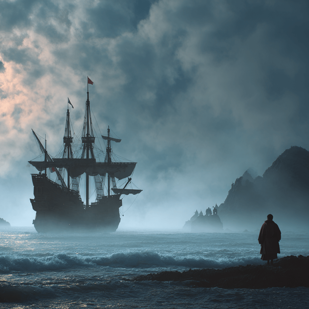 1549年、夏。薩摩の海にひときわ異様な影が現れたと、後に島の古老たちは語る。波の上を滑るその船は、日ノ本のどの工匠も見たことのないかたちをしていた。山のように高い帆柱、黒々とした船体、腹には異国の鉄砲がぎっしりと詰まっている。